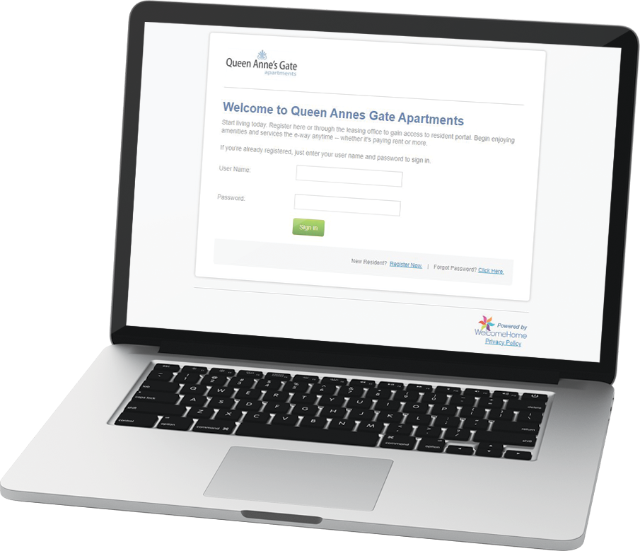 To register for a new account, simply click the Register Now button in the Resident Portal and enter your information. Your unit number is a specific code for your building and apartment number.